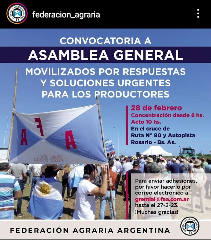 Mañana desde las 8 horas habrá una concentración de productores rurales en reclamo de medidas que lleguen al sector en tiempo y forma. La entidad organizadora es Federación Agraria pero luego se fueron confirmando su participación SRA, CRA , Coninagro y también los productores autoconvocados. "La situación del productor es muy angustiante los anuncios, no han tenido los efectos que se esperaban y esto que no se cumple en un momento tan desesperante genera más angustia, esto se transforma en una reaccion más compleja y nosotros decidimos reencauzar a traves de una manifestación, no solo por lo coyuntural sino por lo estructural que está pasando, quedando a las claras con esta sequía la falta de políticas publicas para el sector" aseguró Carlos Achetoni Pte de FAA en dialogo con Baqueano a pocas horas de la movilización.