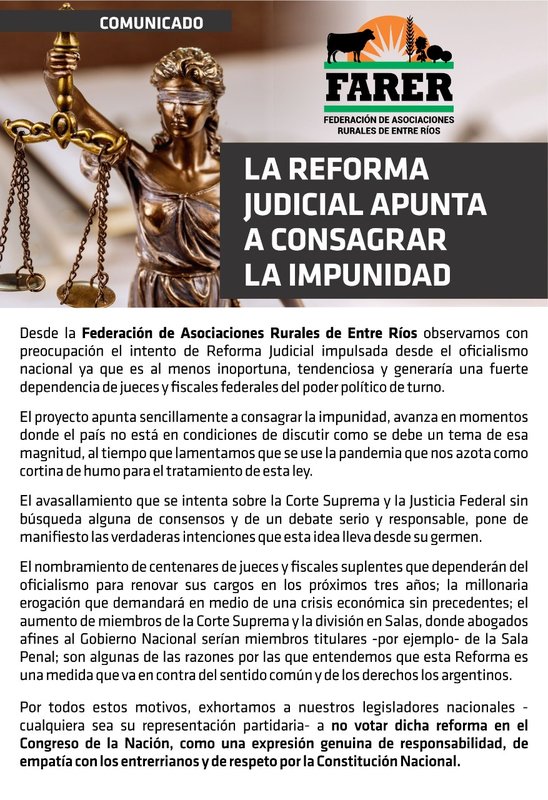 Farer emite un comunicado ante la búsqueda de la reforma judicial